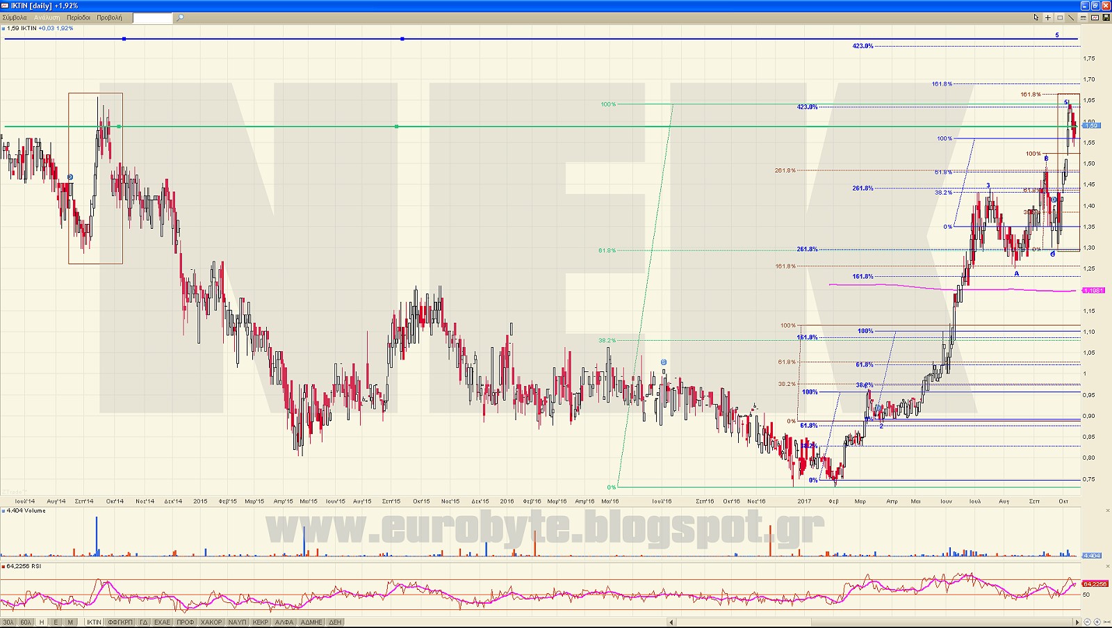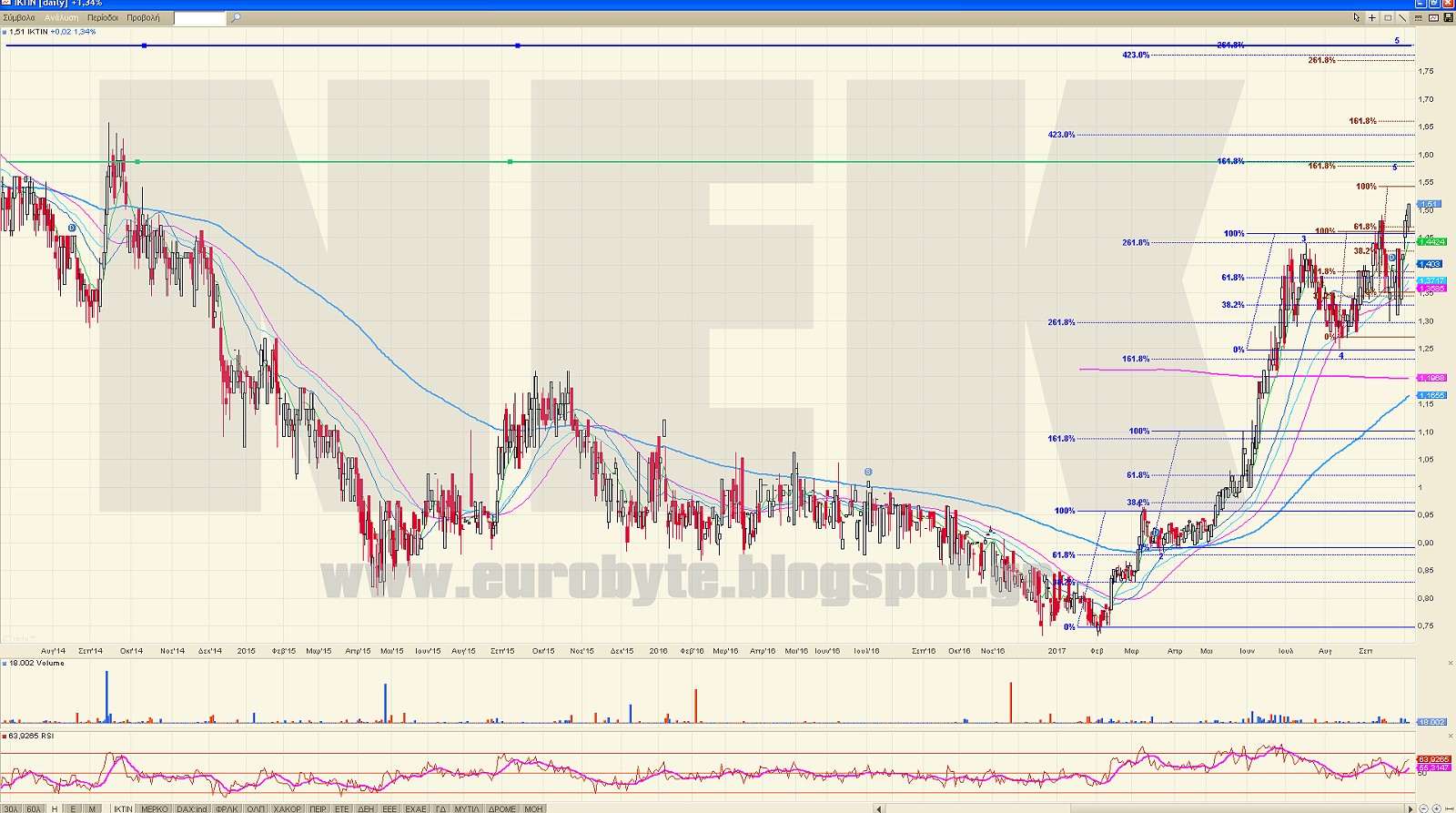 Αυτό με αναλογία 161.8% του 1 δίνει τα προηγ υψηλά στη περιοχή του 1 ευρώ και με 261.8% του 1 δίνει τα υψηλά του 2014 στη περιοχή του 1.20+
