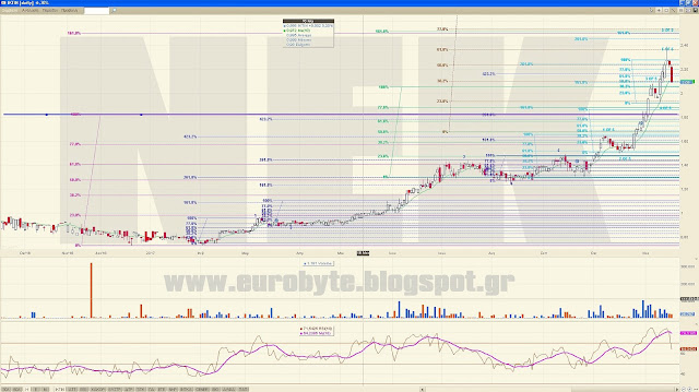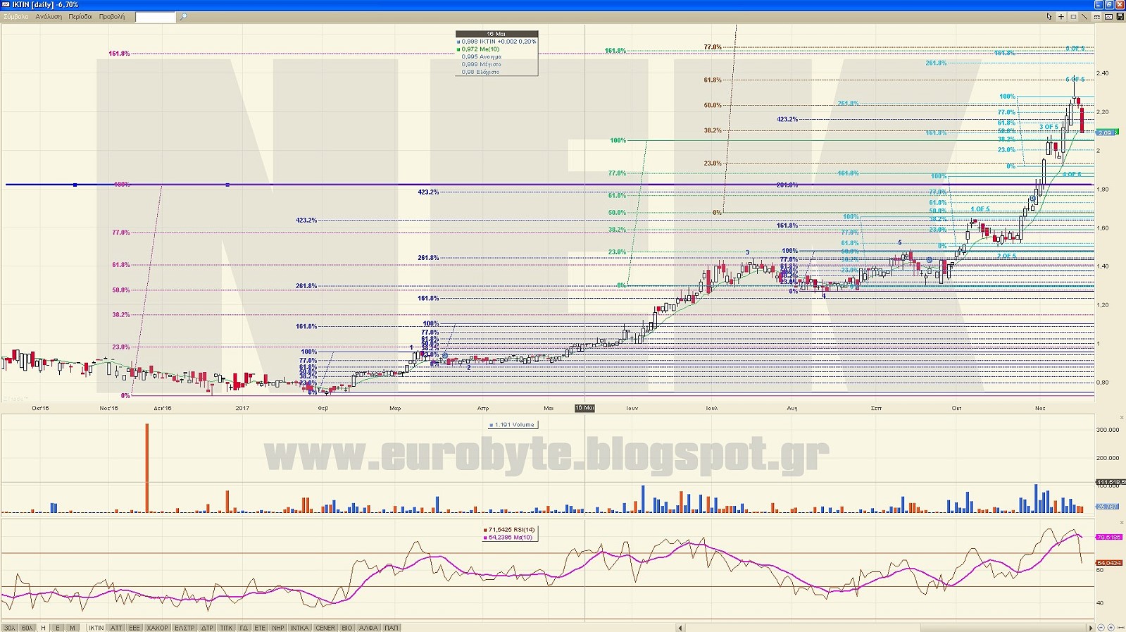Όπως φαίνεται ο ΙΚΤΙΝ έχει και το 2.50 ως λήξη εσωτερικού 5 με αναλογία 161.8% του 1 αλλά και το 2.28 (πάντα σε κλεισίματα) με 5=1. Δείχνει εδώ πιθανότητα κορύφωσης δεδομένης και της διαφωνίας RSI.