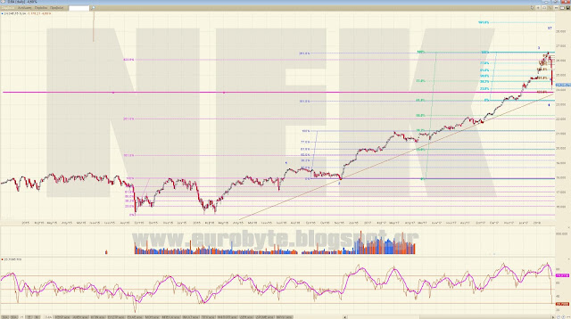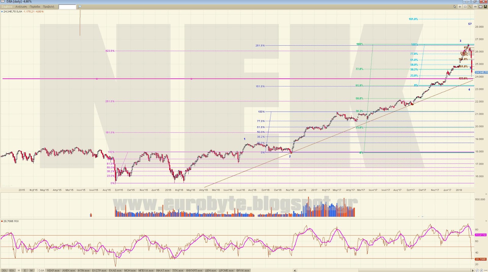 Ο dow χθες σχεδόν έφτασε στο 423% του 1 καθοδικού. Eκκρεμεί σήμερα η πλήρης προσέγγιση του επιπέδου και πιθανότατα η αντίδραση από αυτό το σημείο. Δηλ. βλέπει τις 23750 μονάδες πριν αντιδράσει.
