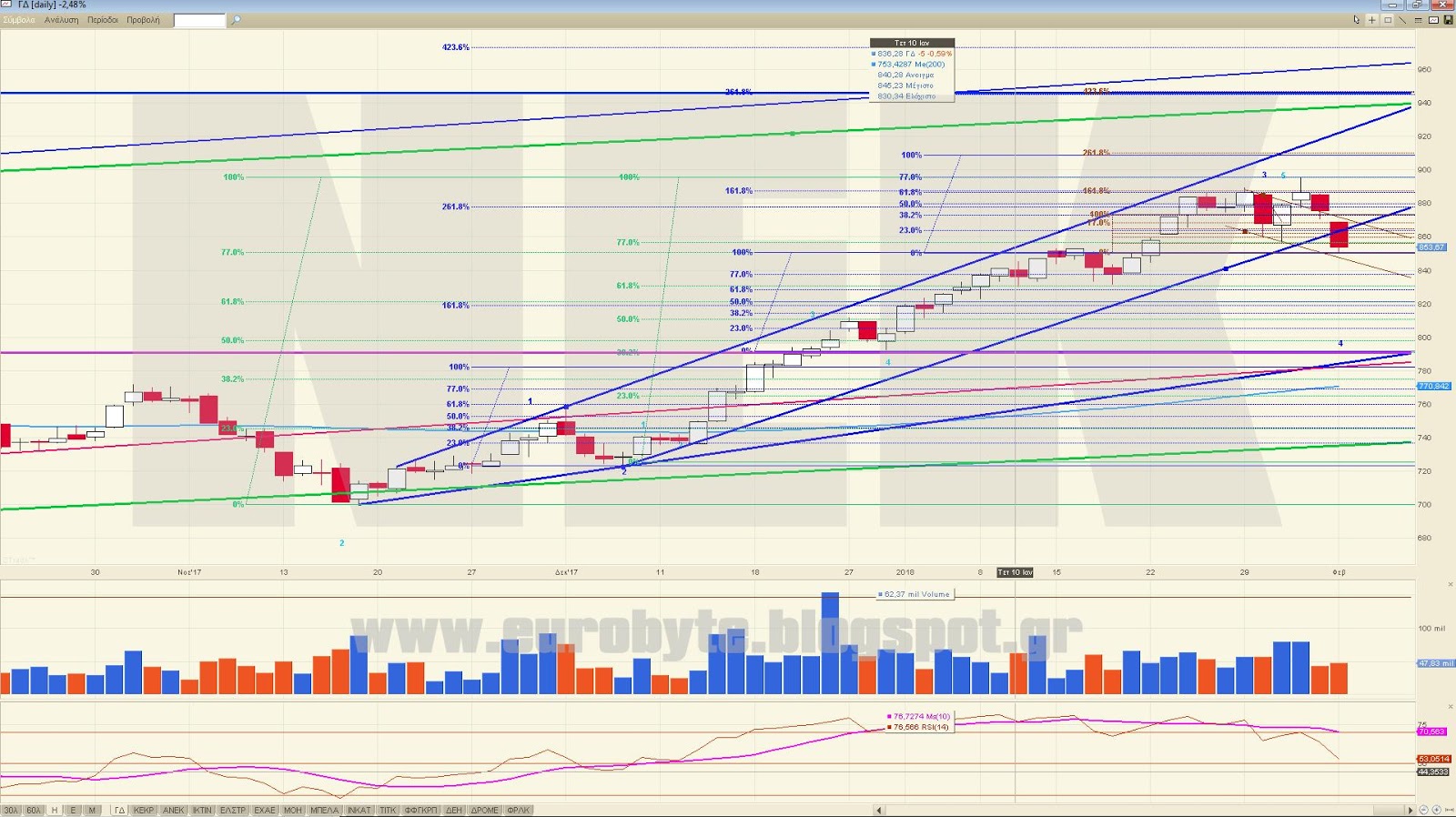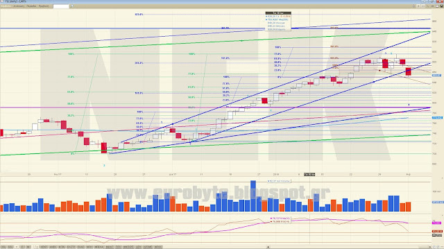 Για τον ΓΔ αναμένω την προσέγγιση του  831.80 που αποτελεί και το 38.2% της διόρθωσης του μεγάλου κύματος 3 ανοδικού, ενώ είναι δυνατή με υπερβολή στην αγορά η προσέγγιση και των 790 μονάδων που είναι το 61.8% της διόρθωσης  του κύματος 3 και παράλληλα σημείο της κυ΄ριας γραμμής τάσης του κύματος 1 ανοδικού από τις 700 μονάδες.