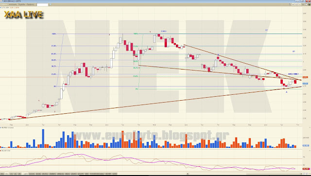 4) Πουλώντας είτε την ΕΤΕ είτε το ΙΑΣΩ είτε και τις 2 μπορούμε να αγοράσουμε την ίδια στιγμή κάτι άλλο που έχει κάποιο διαγραμματικό ενδιαφέρον, είτε είναι σε επίπεδο λήξης διορθωτικού, είτε έχει κάνει διάσπαση γραμμής συνεχίζοντας τα trade μας.