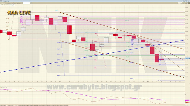 Βρισκόμαστε σε κύμα 4 εντός του διορθωτικού συμμετρικού τριγωνικού σχηματισμού ΑΒC από τον οποίον λείπει το D & το Ε. Μετά το πέρας και του Ε αναμένεται καθοδική διάσπασή του (κύμα 5 καθοδικό) με πιθανούς στόχους 775 και 755 μονάδες.