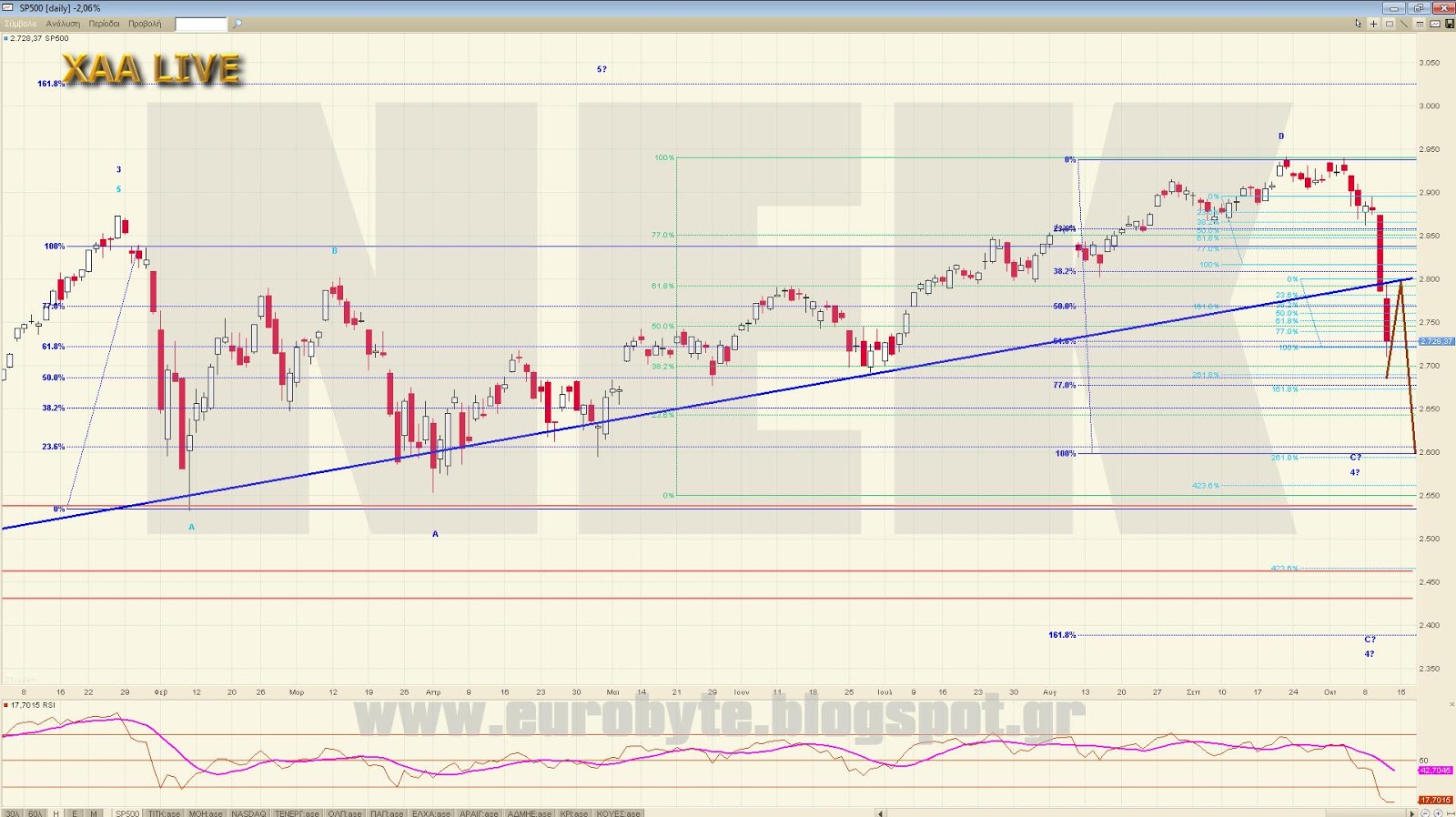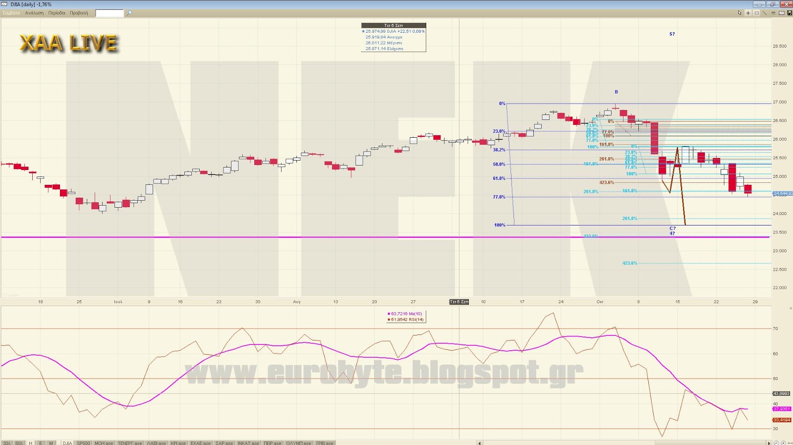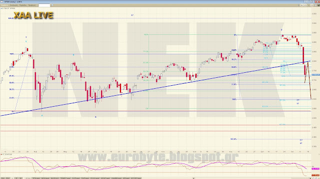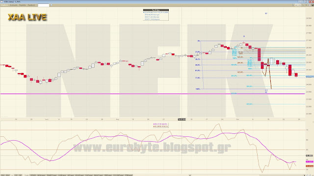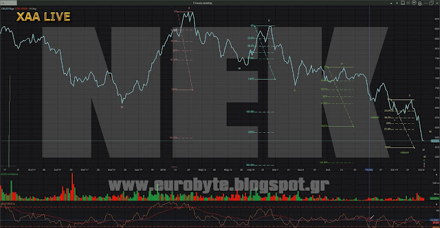 Για τον SPX και τον DOW JONES πριν 3 εβδομάδες αναρτήθηκαν σενάρια τα οποία και ακολουθούνται με απόλυτη ακρίβεια, η επικαιροποίηση των οποίων που έγινε στις 26/10 εδώ: https://eurobyte.blogspot.com/2018/10/dow-spx.html (χωρίς οι γραμμές του βασικού σεναρίου να έχουν μετακινηθεί) έδειχνε καθοδικό υπόλοιπο μέρος του οποίου έγινε χθες.