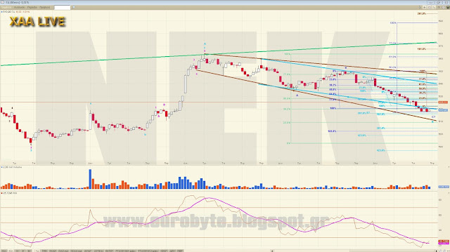 Ακριβώς όπως τέθηκε χθες, καθοδική διάσπαση του 642 μας πήγε σε κατώτερα επίπεδα. Η ισότητα του καθοδικού μας πάει στο 620 το οποίο παράλληλα είναι και το 61.8% του όλου ανοδικού και θεωρείται επιπεδο με ιδιαίτερα μεγάλες πιθανότητες να το δούμε. Το παρόν σενάριο αναφέρεται καθημερινά από όταν ήμασταν στις 664 μονάδες και δείχνει να ακολουθείται με ευλάβεια.