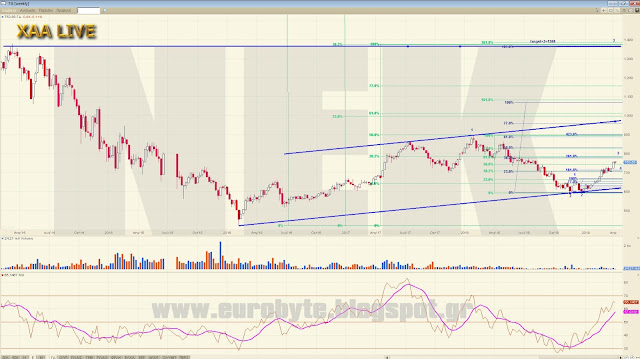 Στη μεσαία εικόνα ισχύουν τα 2 σενάρια που αναλύθηκαν χθες, το ένα με στόχο τις 784 μονάδες και το άλλο στις 797 αλλά σαφώς θα μεσολαβήσουν διορθώσεις μέχρι τα επίπεδα αυτά.