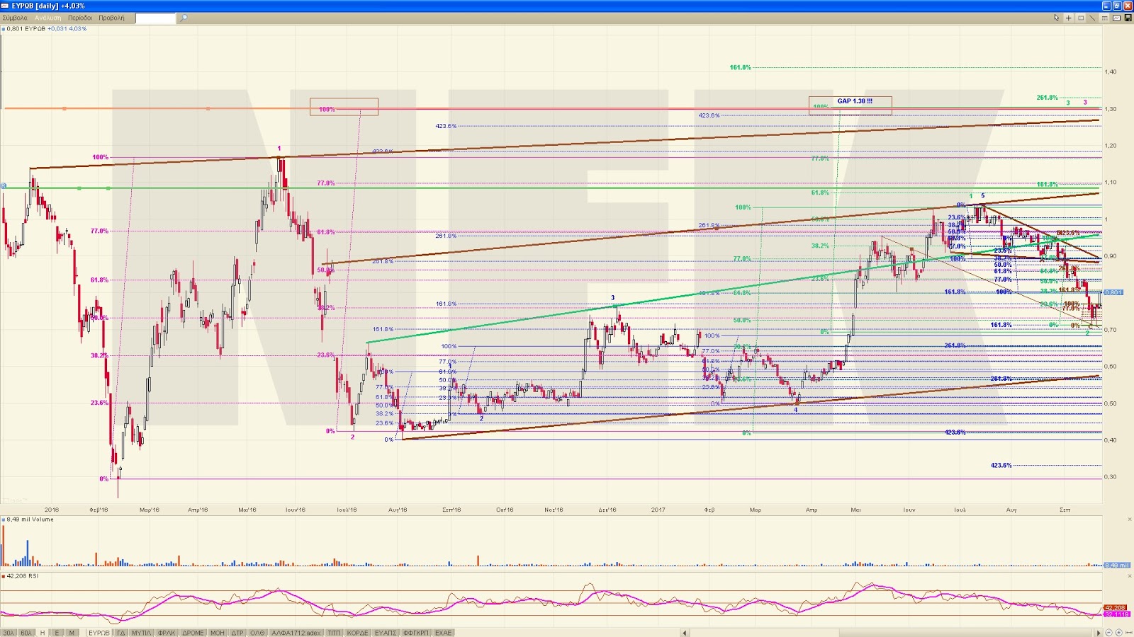 Το 1.30 είναι τόσο το κλείσιμο του παλιού γκαπ, όσο και η ισότητα (φίμπο φούξια) της πρώτης ανοδικής κίνησης!