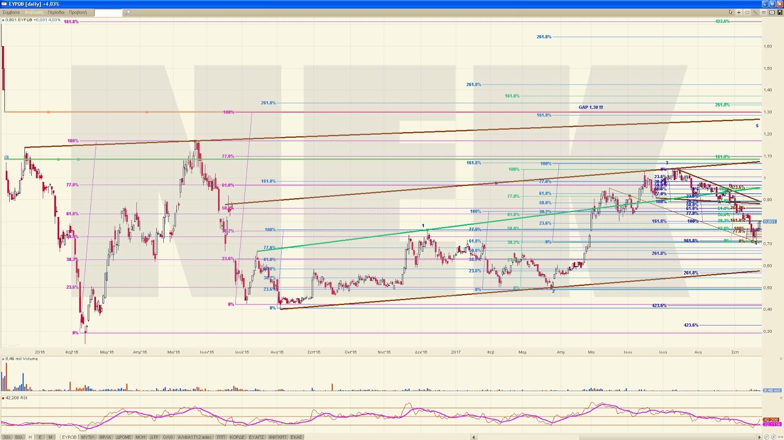 Στόχος της νέας αυτής κίνησης όταν αυτή θα ολοκληρωθεί είναι είτε τα προηγ. υψηλά στο 1.04 με 5=100% του 1, είτε ακόμη πιο πιθανά το 1.28 με 161.8% του 1.