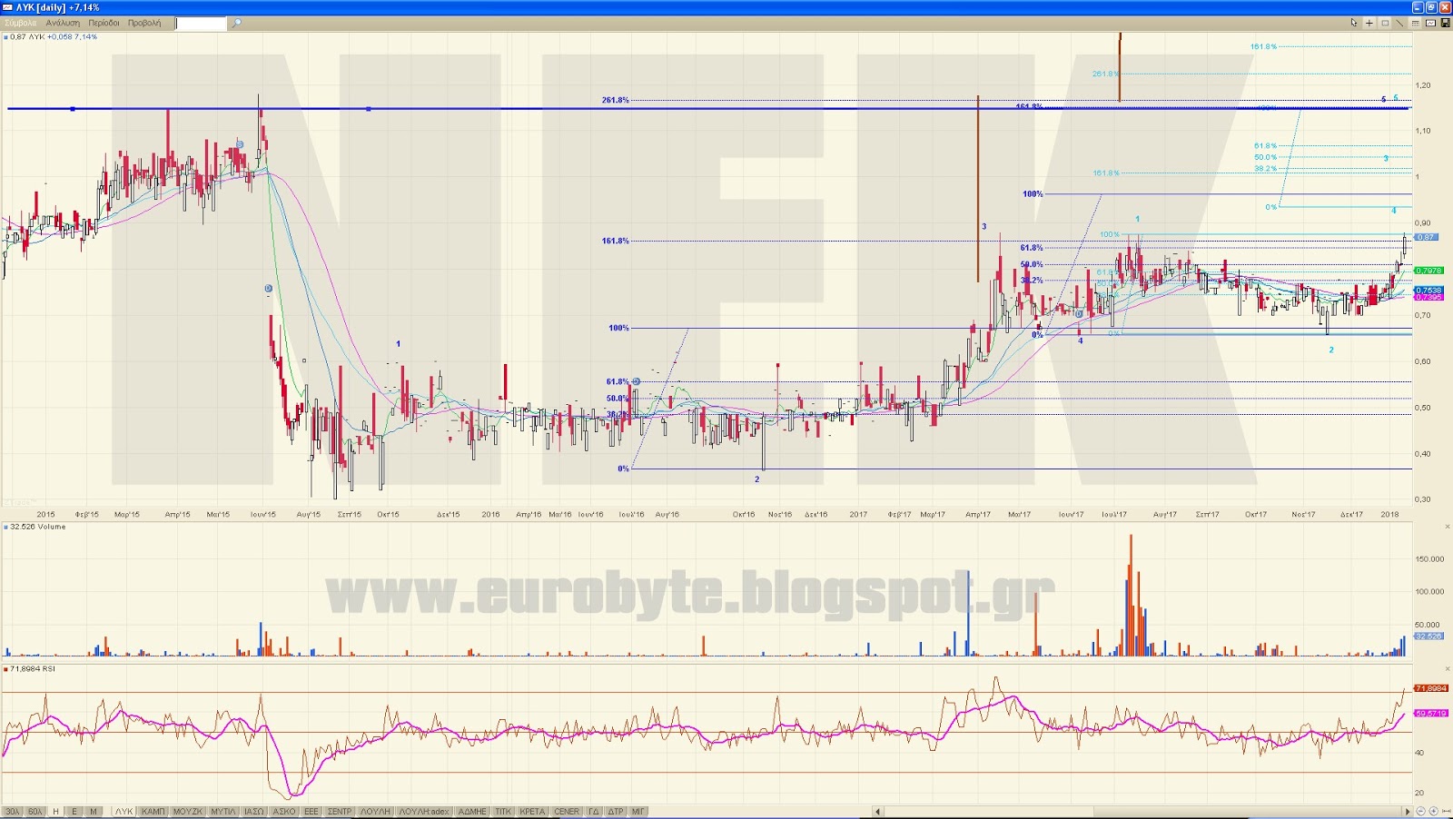 Πιθανή ενδιάμεση στάση το 1 ευρώ για να δώσει λήξη το εσωτερικό κύμα 3, διόρθωση μέχρι το 0.94 για να δώσει το τελικό 1.15 και το εσωτερικό με 5=1 (γαλάζιο φίμπο)