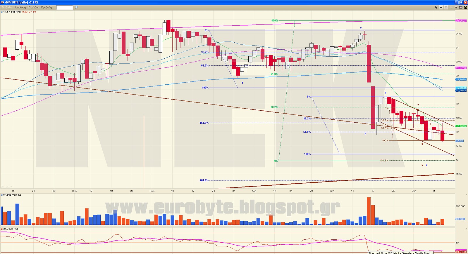 Από εκεί και πέρα αναμένεται αντίδραση στο συνολικό εξωτερικό 5 κυματικό με πιθανά σημεία 18.90 και 20.00.